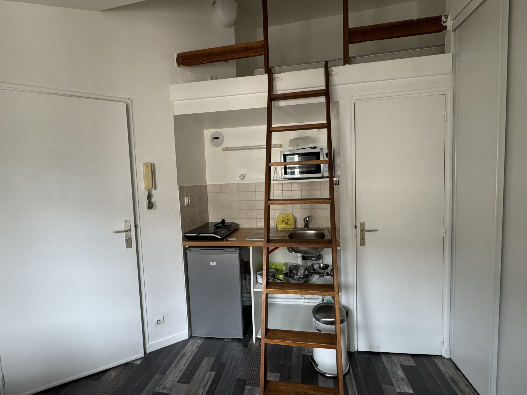Quartier Notre-Dame, à proximité immédiate de toutes les commodités (commerces, bus de ville, laverie), découvrez ce lofty meublé niché au dernier étage.