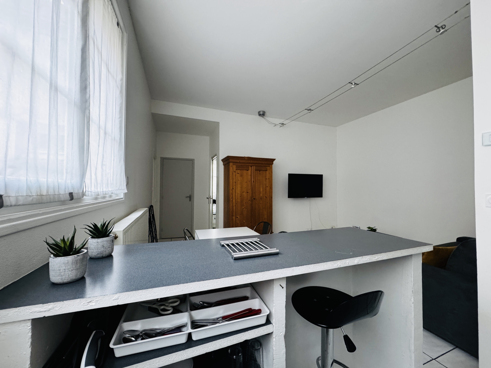 Cet appartement situé à proximité immédiate de la faculté de sciences humaines offre une belle et lumineuse pièce de vie avec cuisine ouverte, une chambre, une salle d'eau, de nombreux placards et des WC.