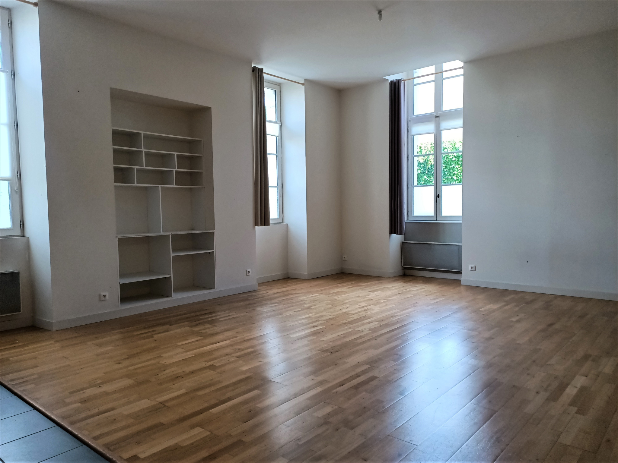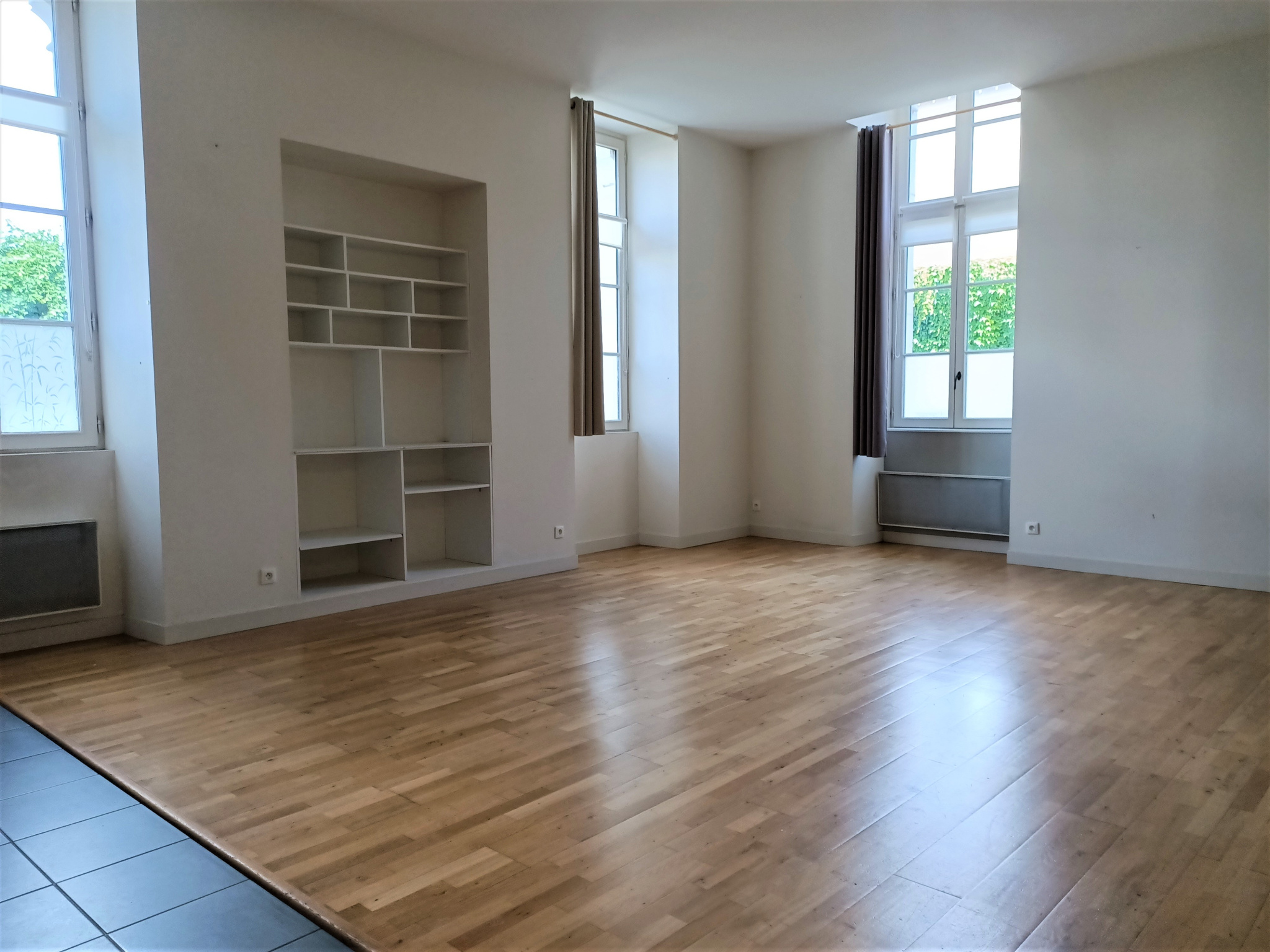 POITIERS - Proche centre-ville, agréable T3 de 69 m² situé au rez-de-chaussée d'une résidence sécurisée. Rénové en préservant le charme de l'ancien, cet appartement propose un séjour avec coin cuisine, deux chambres et une salle de bains.