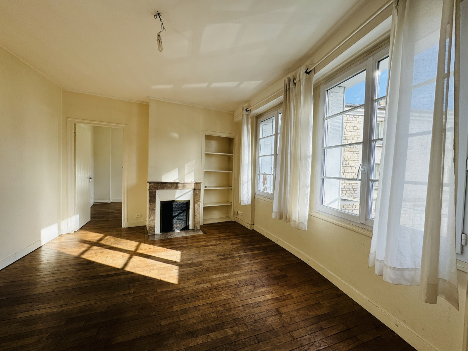 Poitiers Centre - Quartier Conservatoire, dans une petite copropriété (6 appartements) entièrement rénovée, un appartement ancien lumineux et plein de charme de 58,14 m² sur parquet, exposé plein sud avec vue dégagée comprenant une entrée, un séjour sur parquet avec cheminée, deux chambres sur parquet avec dressing chacune, une cuisine séparée, un cellier, une salle d'eau et un WC séparé. Fenêtres en double vitrage récentes, électricité rénovée, chaudière gaz à condensation neuve, fibre optique. Une cave en plus. Local vélo commun ainsi qu'une cour. Un garage peut être acquis en plus