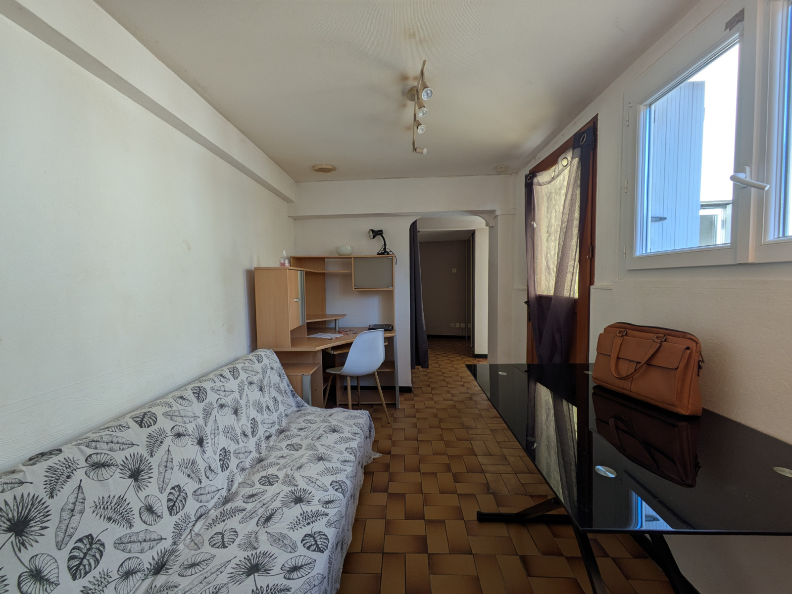 Cuisine : 4.90 m² Chambre (sans fenêtre), 9.47 m² Séjour : 8.66m² Wc : 1.2m² SDB : 5.23 m²