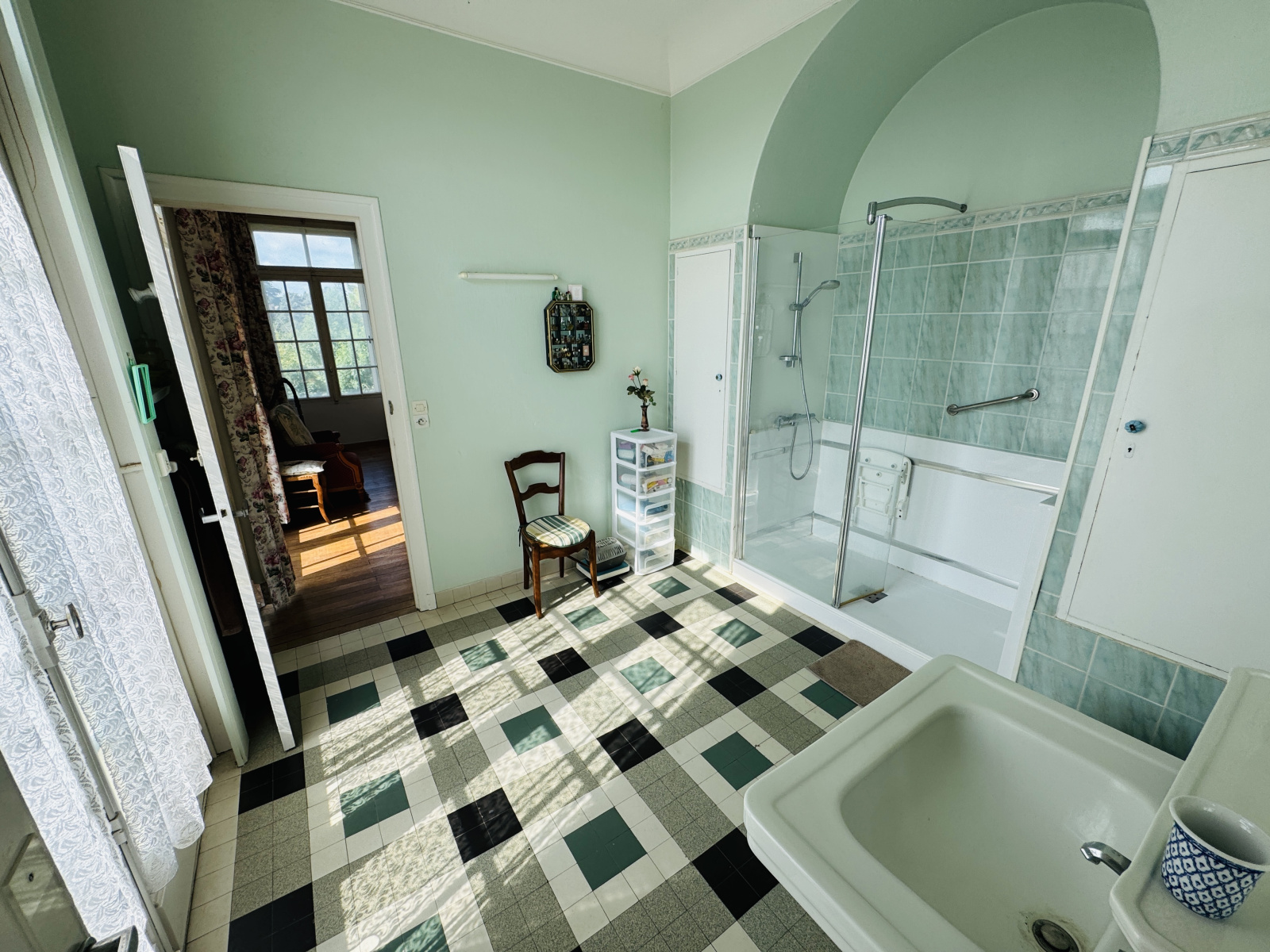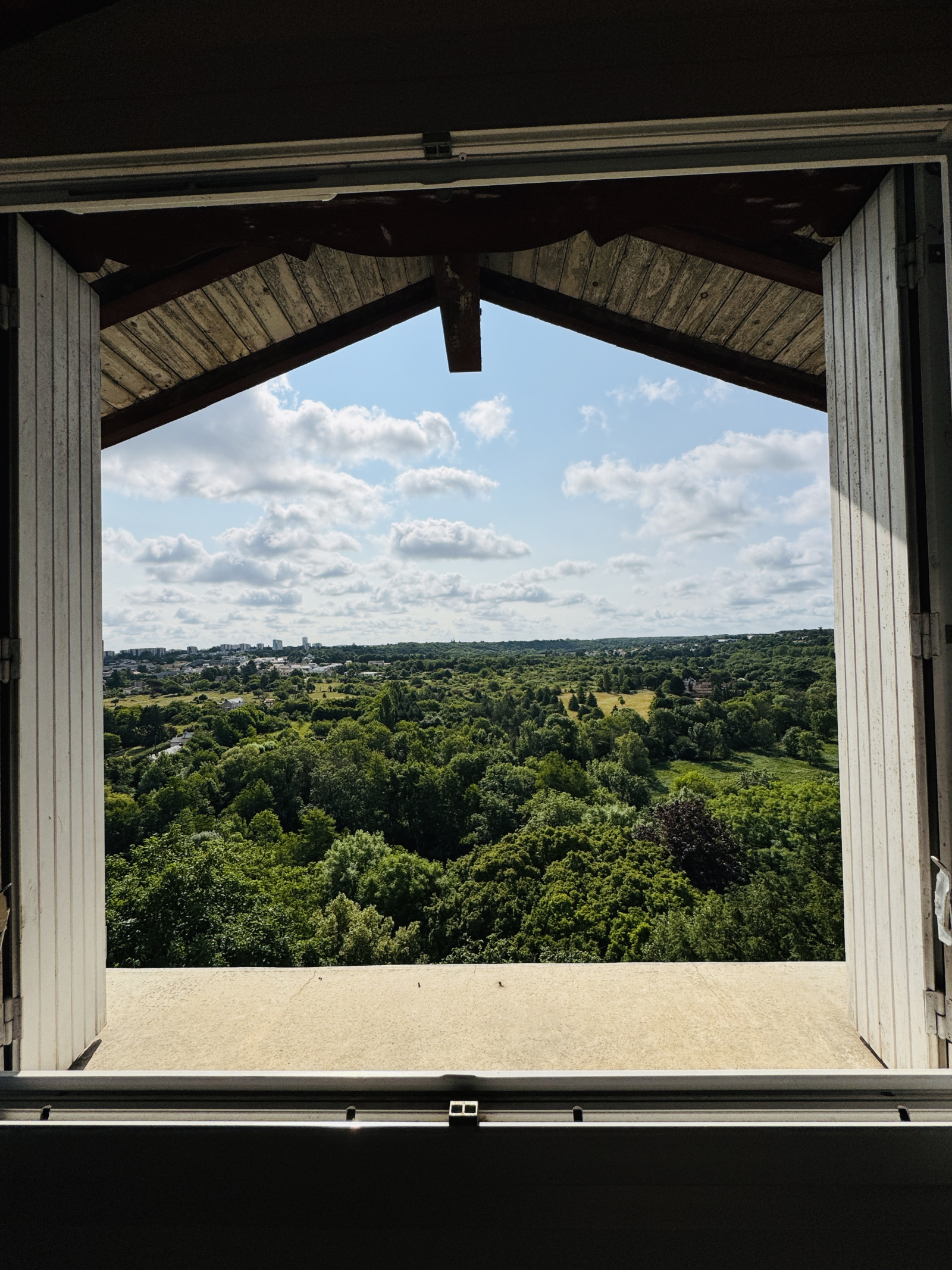 Troisième et dernier étage = un petit palier desservant une 7ème chambre sur parquet avec placards et coin lavabo et trois greniers mansardés de 18m² chacun
