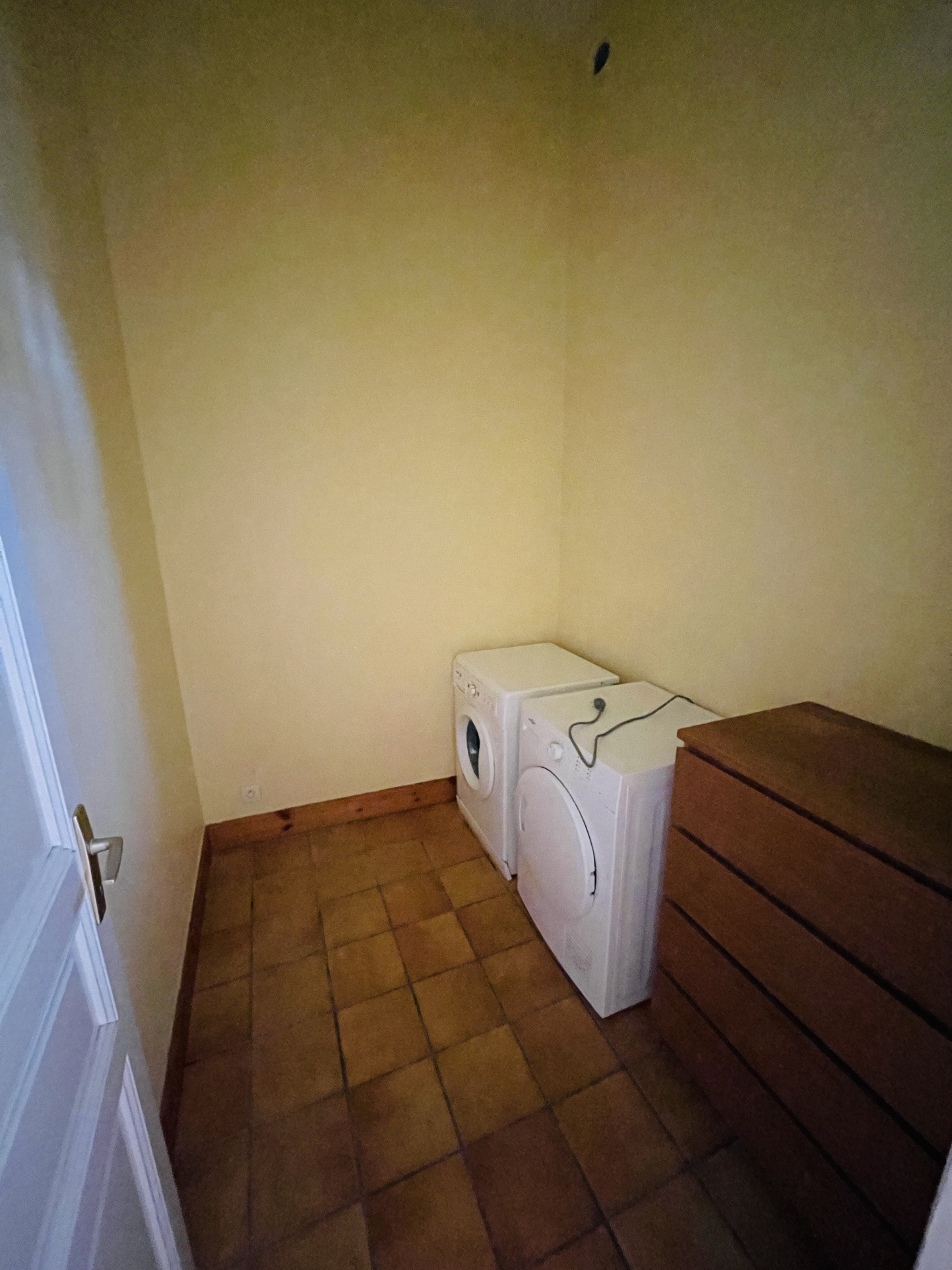 Une entrée au rez-de-chaussée, un bureau, un WC, une buanderie (sèche-linge et lave-linge inclus dans la vente) et un garage !