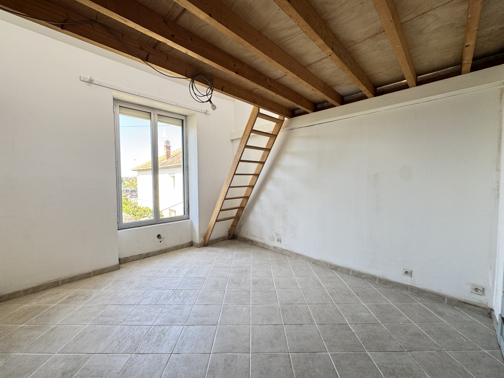 - Chambre 2 sur carrelage de 14m² avec placard et mezzanine de 7m² en sous pente avec velux et accès au grenier de 10m²