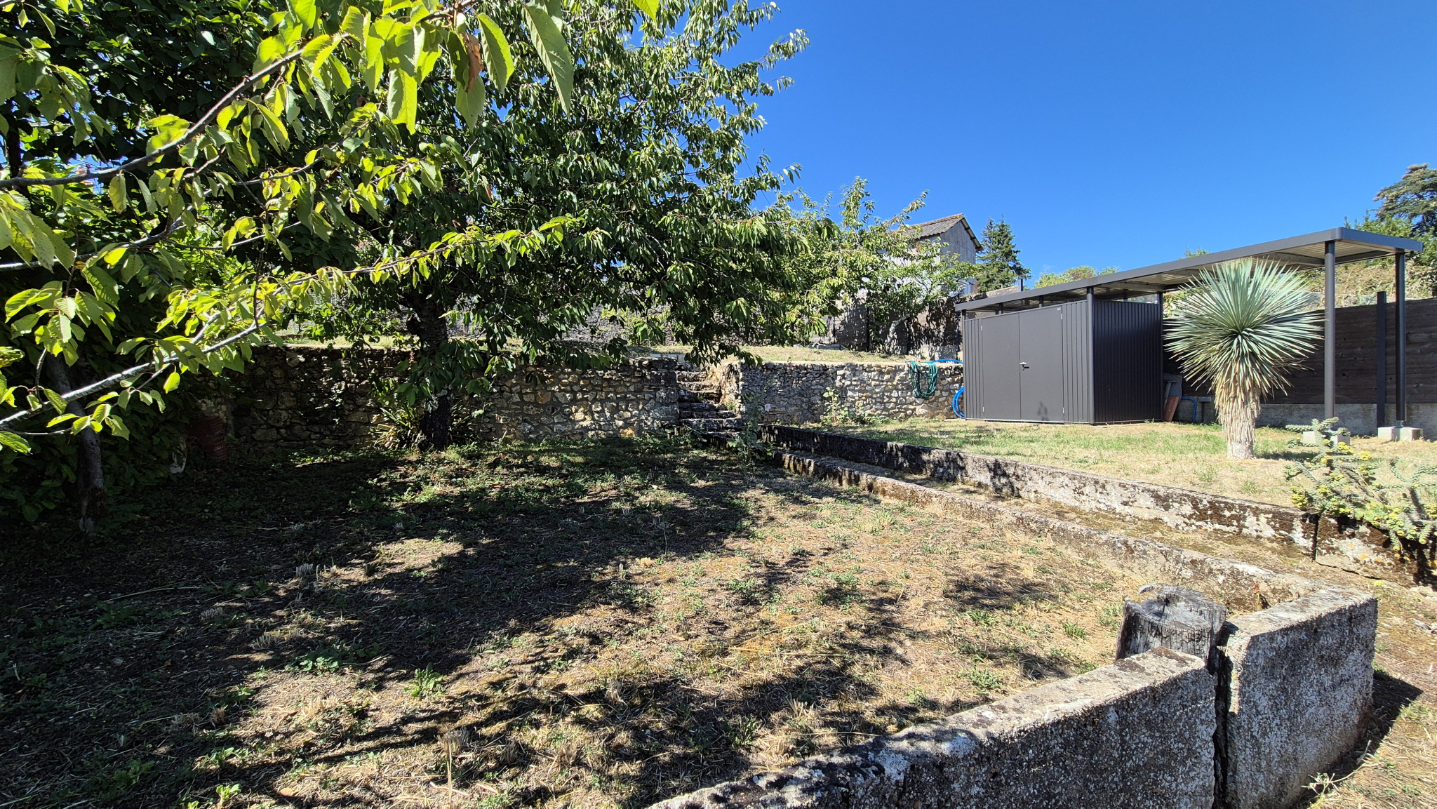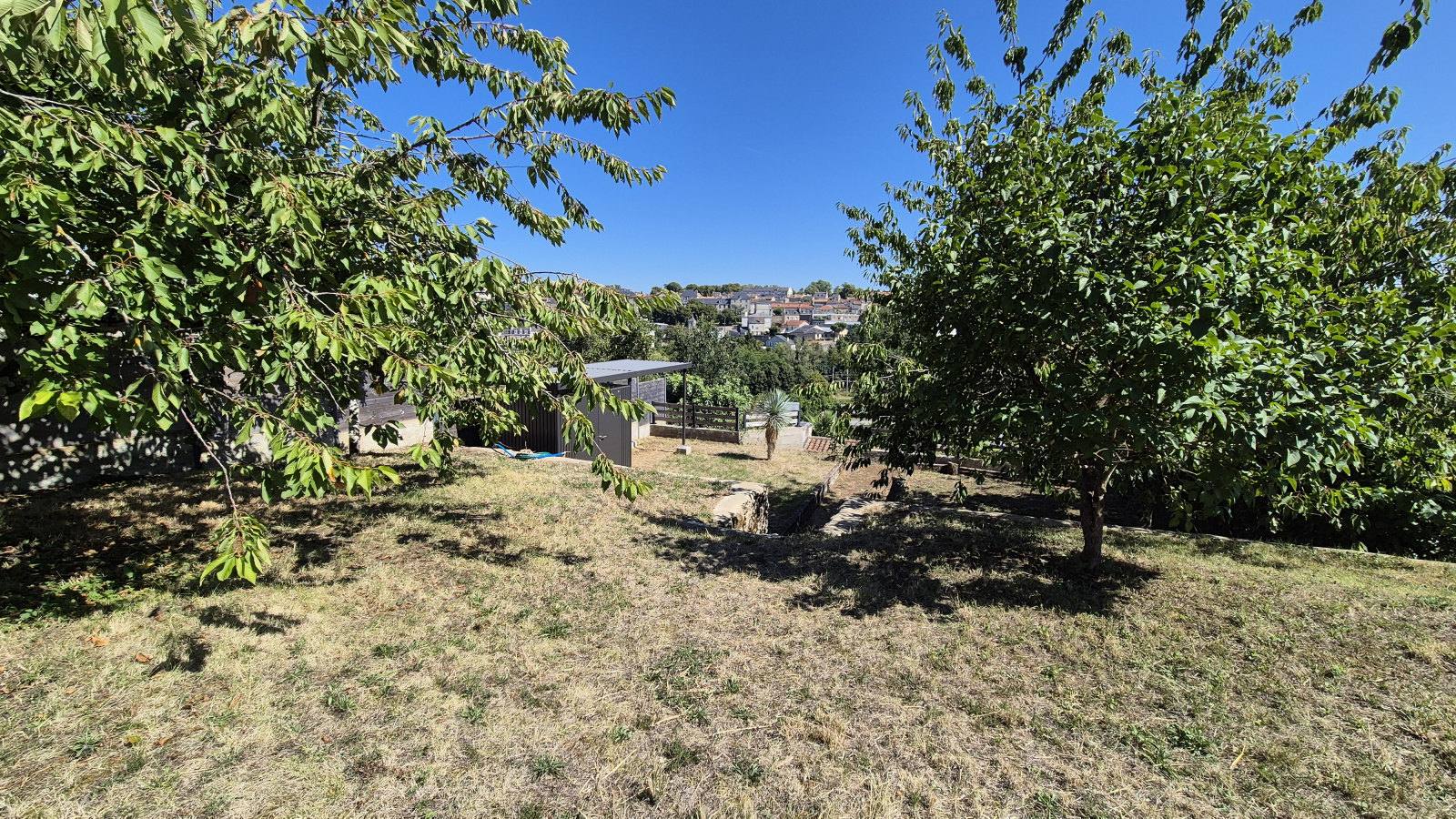 Parcelle de 484m² avec en coteau un joli jardin de 200m² plat avec arbres fruitiers (cerisiers et prunier) et un abri de jardin