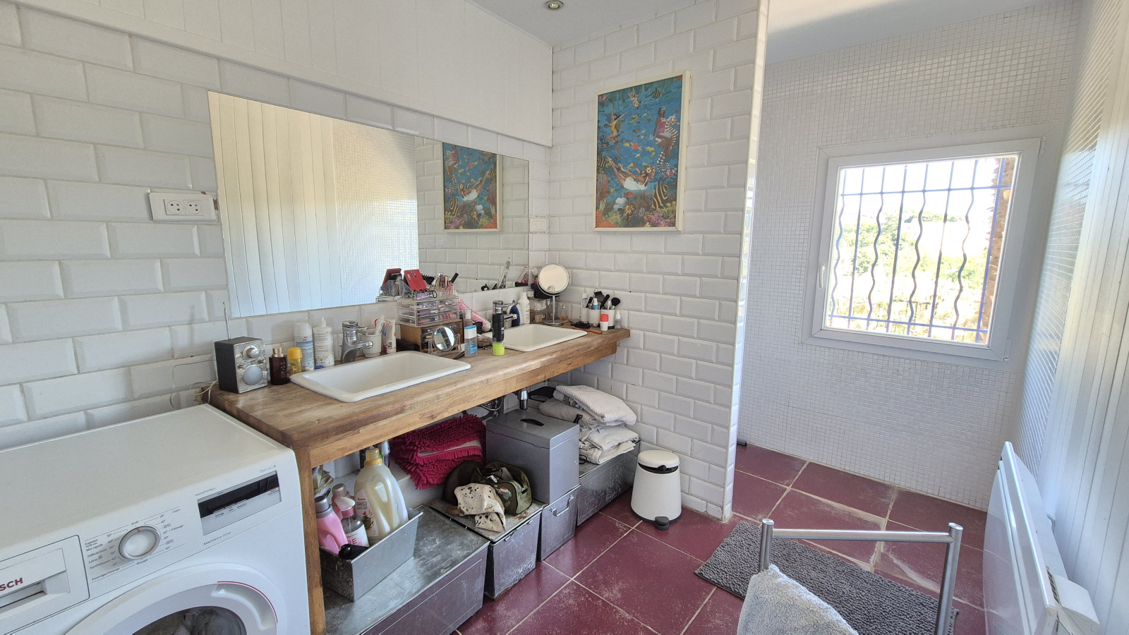Arrivée par une jolie terrasse de 30m², Séjour de 25m², cuisine aménagée et équipée de 16m², 3 chambres et un bureau, une salle d'eau