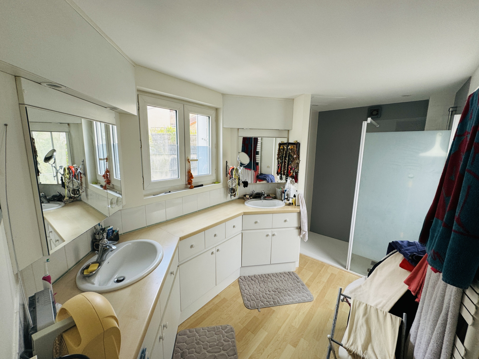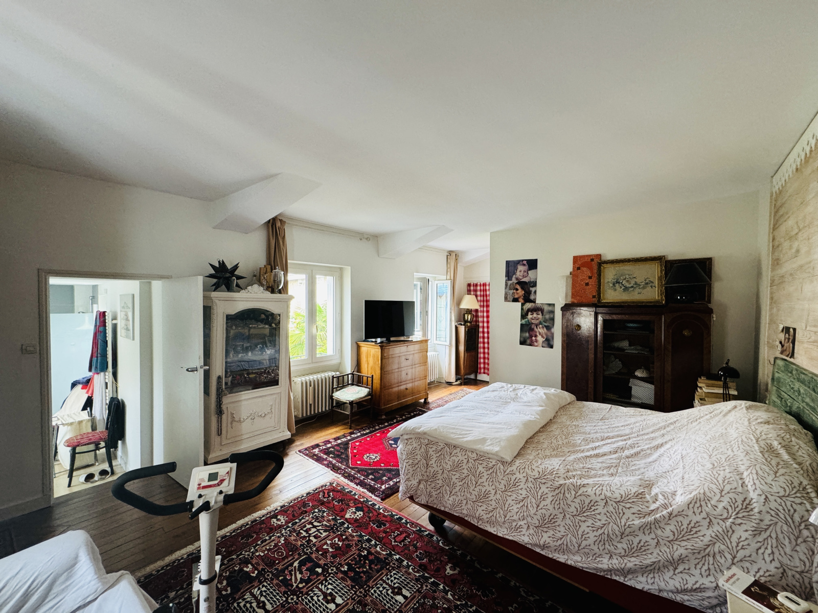 A l'étage un palier avec WC, un salon TV, une chambre principale avec son dressing et sa salle d'eau avec 2 vasques, 3 autres chambres dont une avec un espace bureau important et une salle de bains.