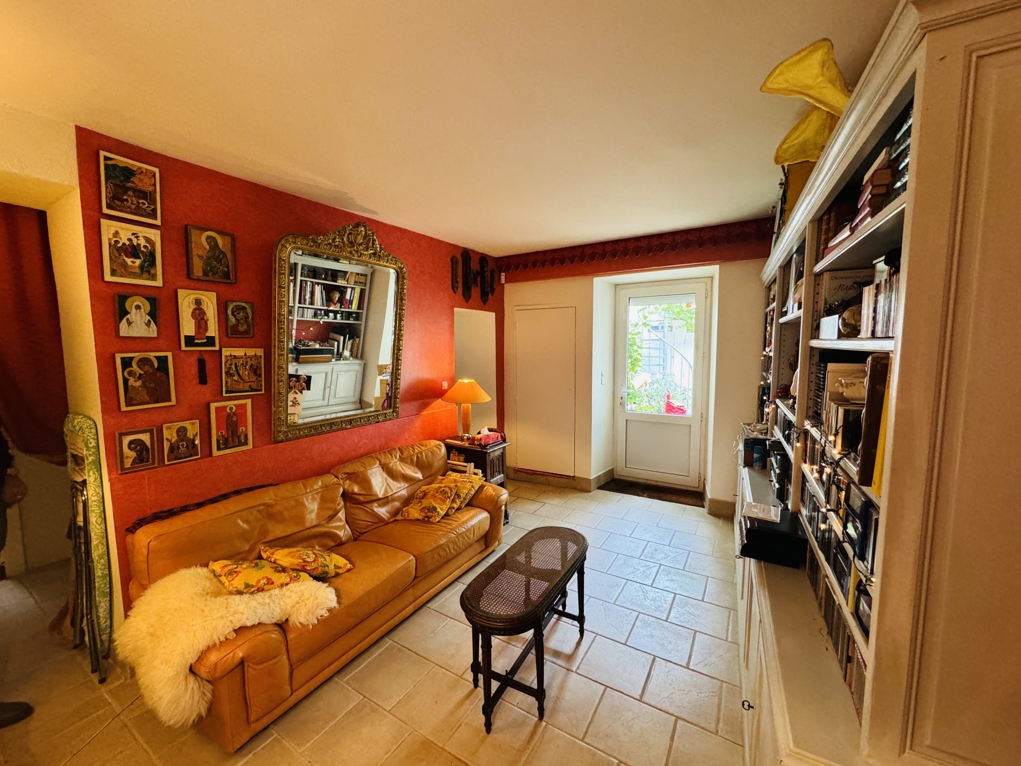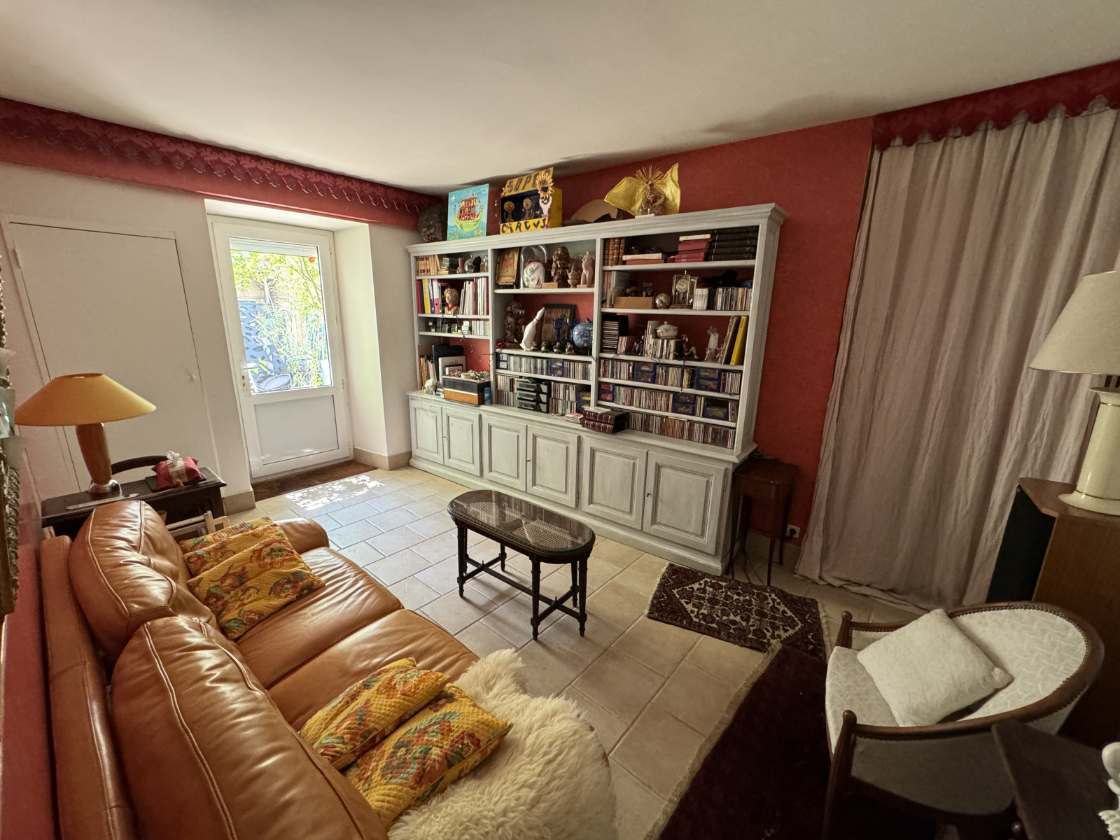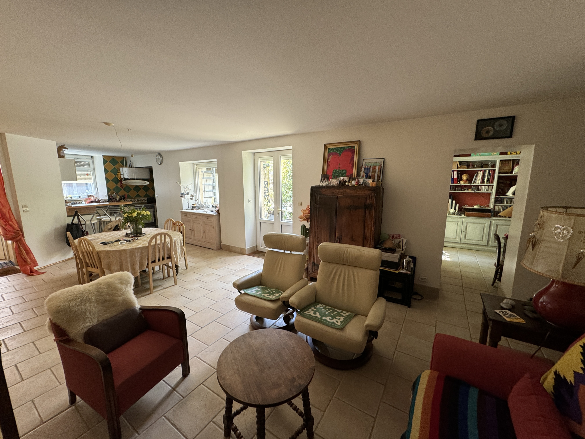 Au rez de chaussée, exposé à l'ouest sans vis à vis, entrée sur séjour-coin repas de 35m² avec cheminée et chauffage au sol, cuisine aménagée ouverte, buanderie, WC, Salon bibliothèque de 20m², cour de 60m², garage de 36m² (12mètres de long), très belles caves voutées au sous-sol.