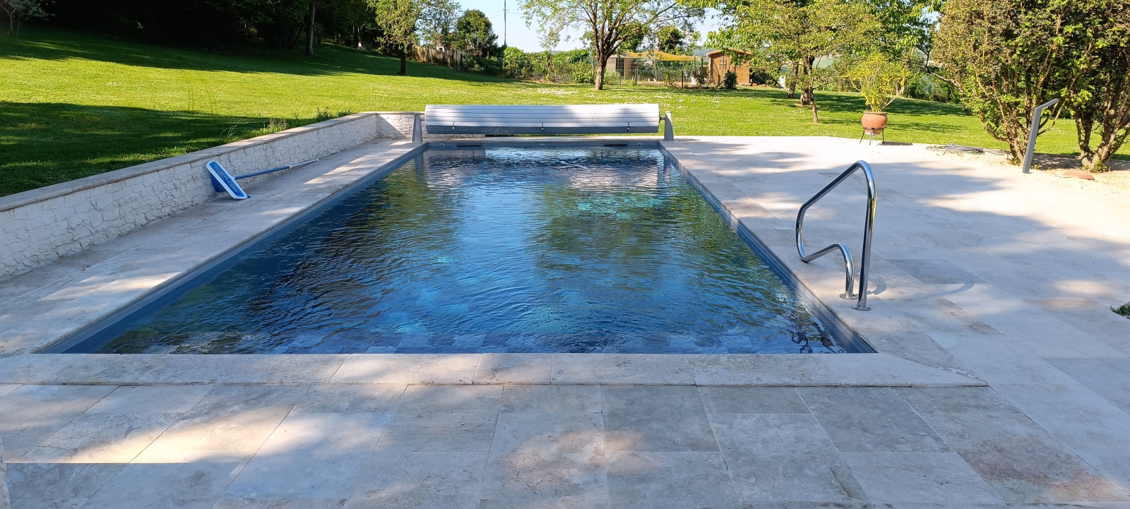 Une piscine traditionnelle construite en 2022, chauffée et sécurisée.
