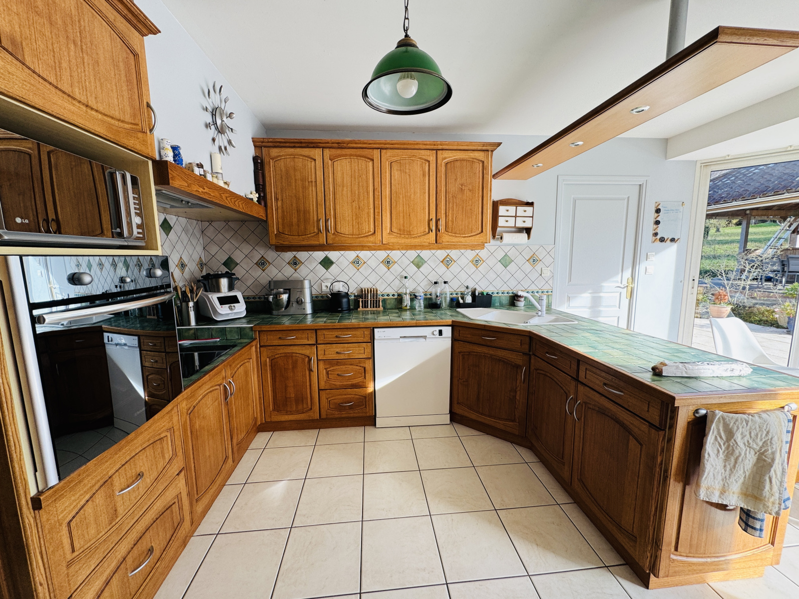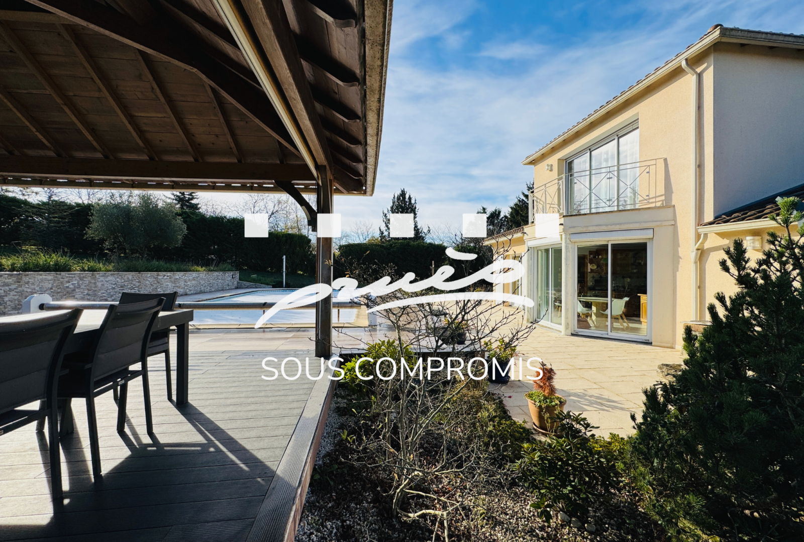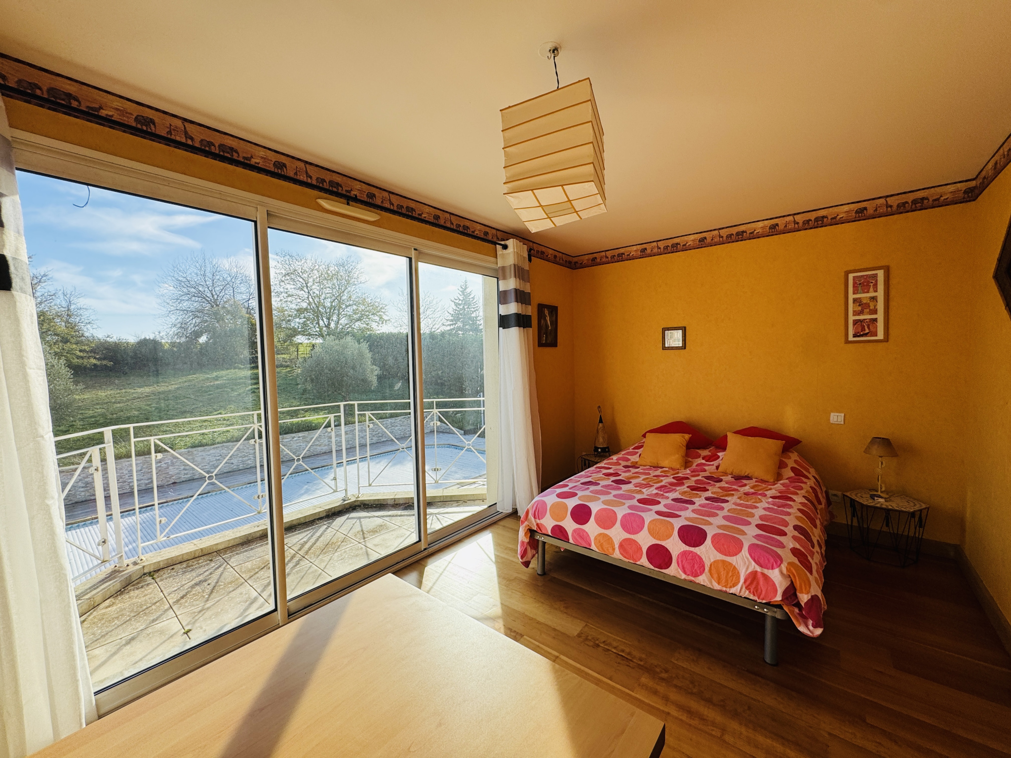 A l'extérieur, une piscine traditionnelle chauffée 12,5*6, spacieuse pergola.