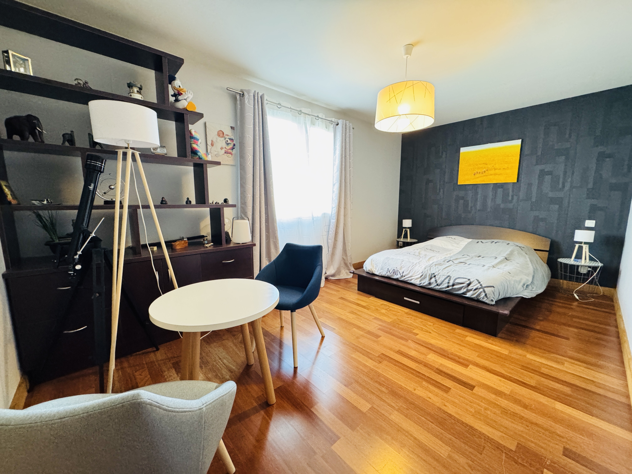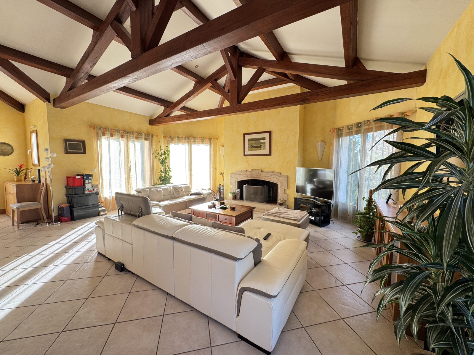 A 10 minutes de Poitiers - Maison contemporaine construite en 2003 comprenant au rez de chaussée: hall d'entrée, séjour cathédrale de 63m² avec cheminée, cuisine aménagée, arrière cuisine, wc, vestiaire.