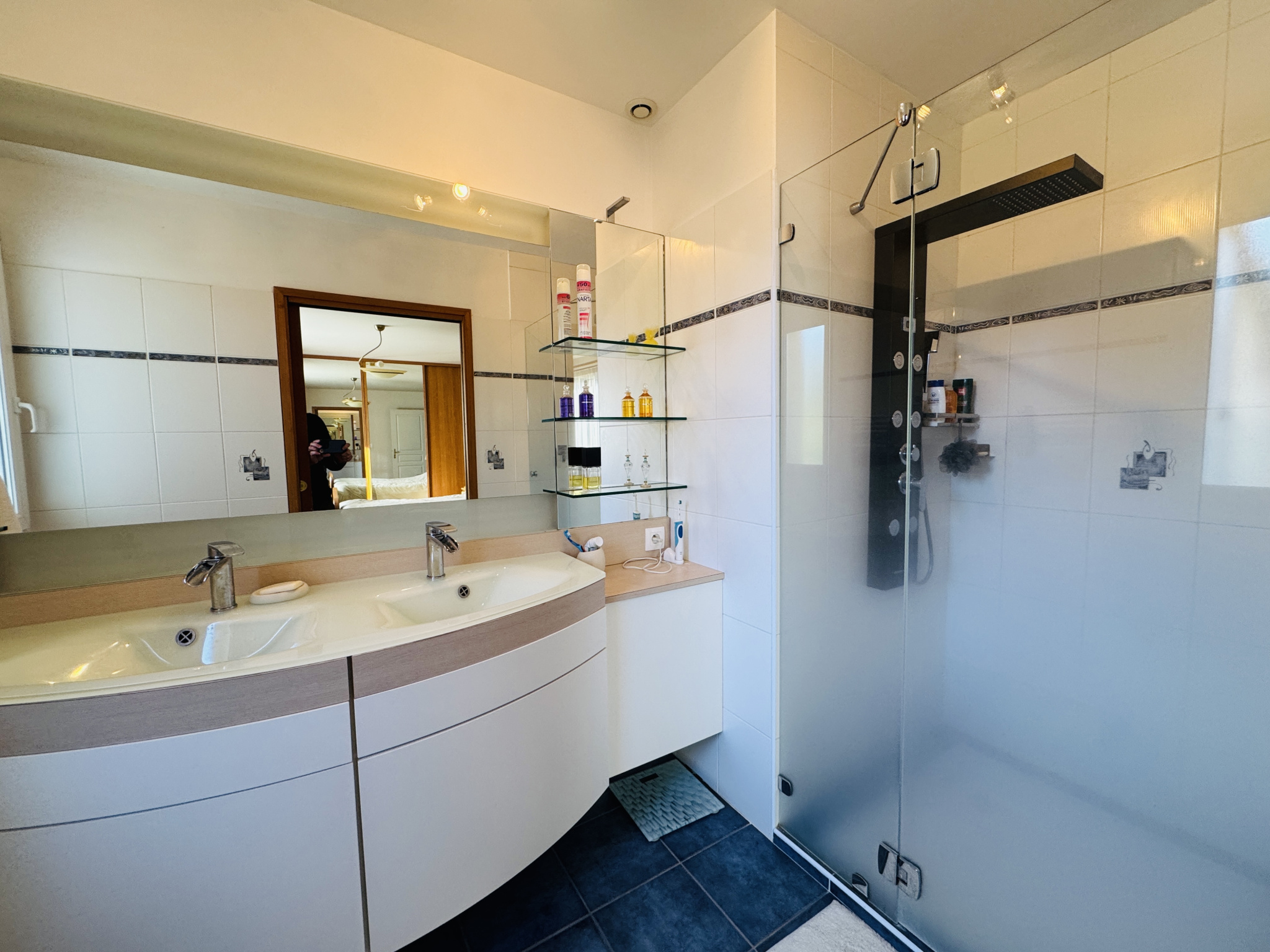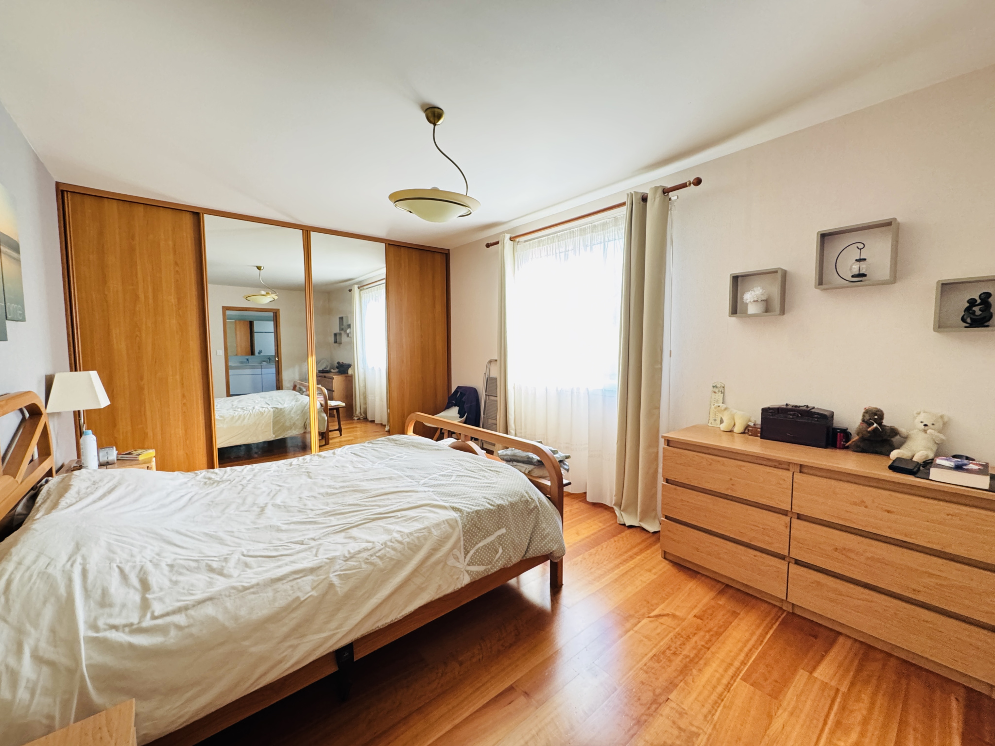 Au demi étage: couloir desservant deux chambres, salle de bains avec baignoire et douche, une chambre parentale avec dressing et salle d'eau, wc.