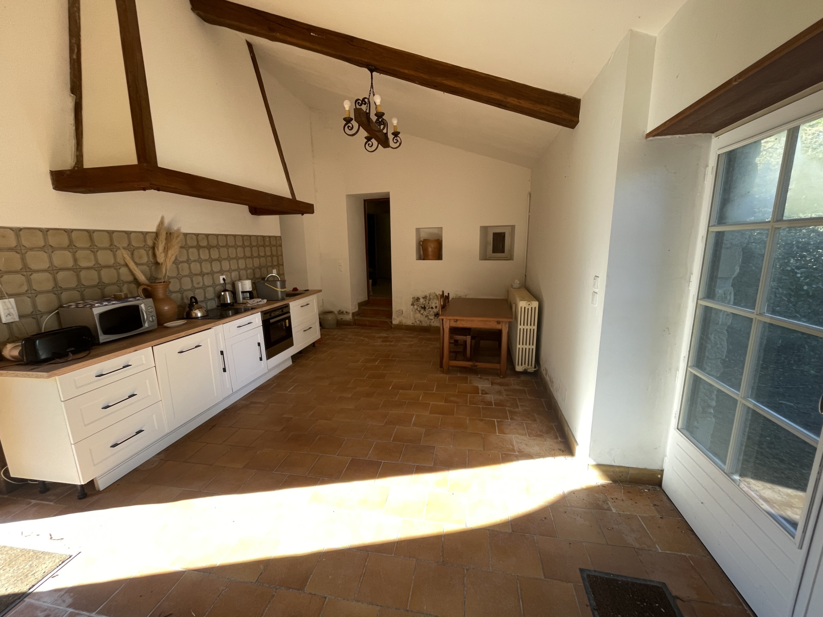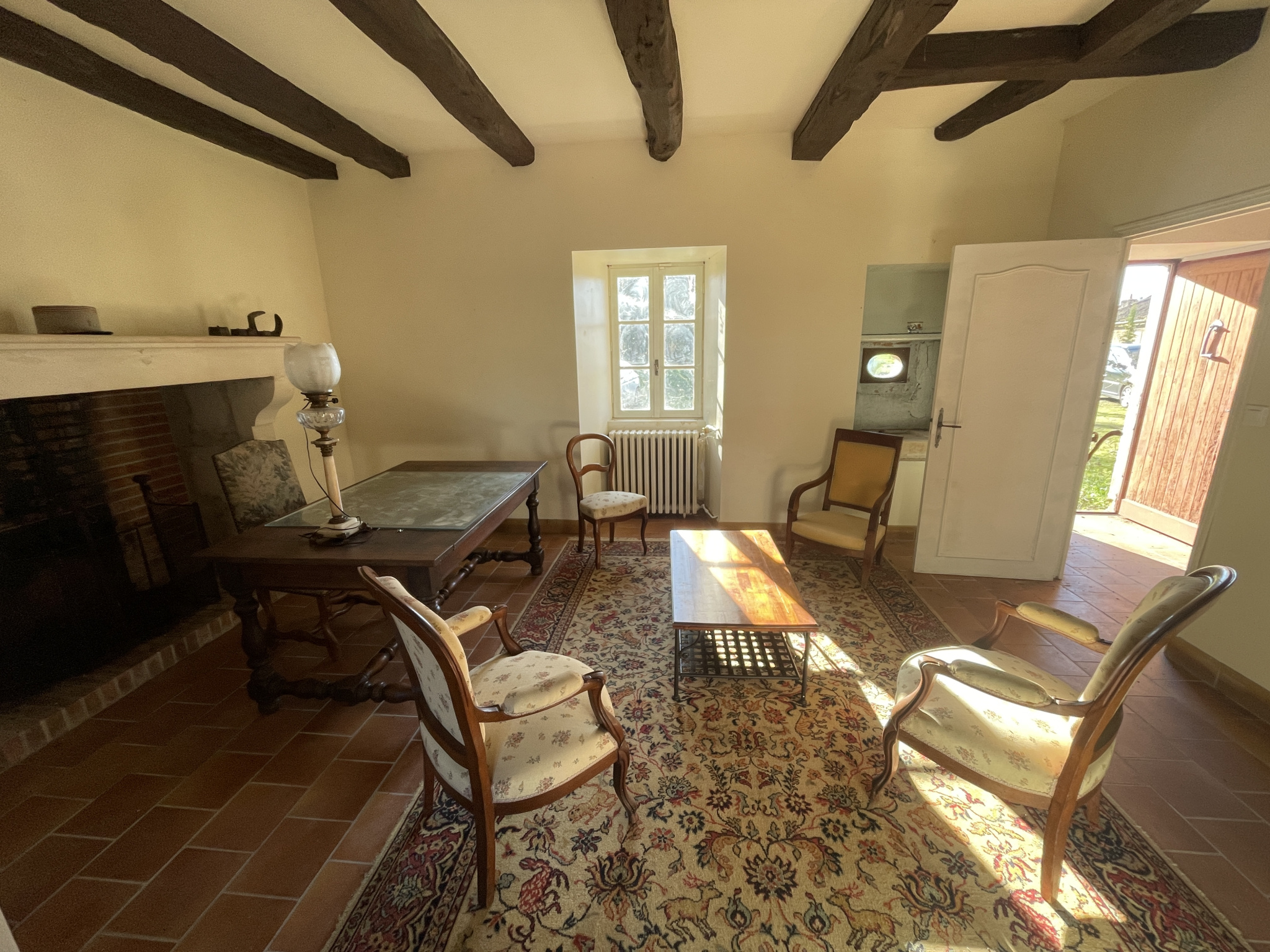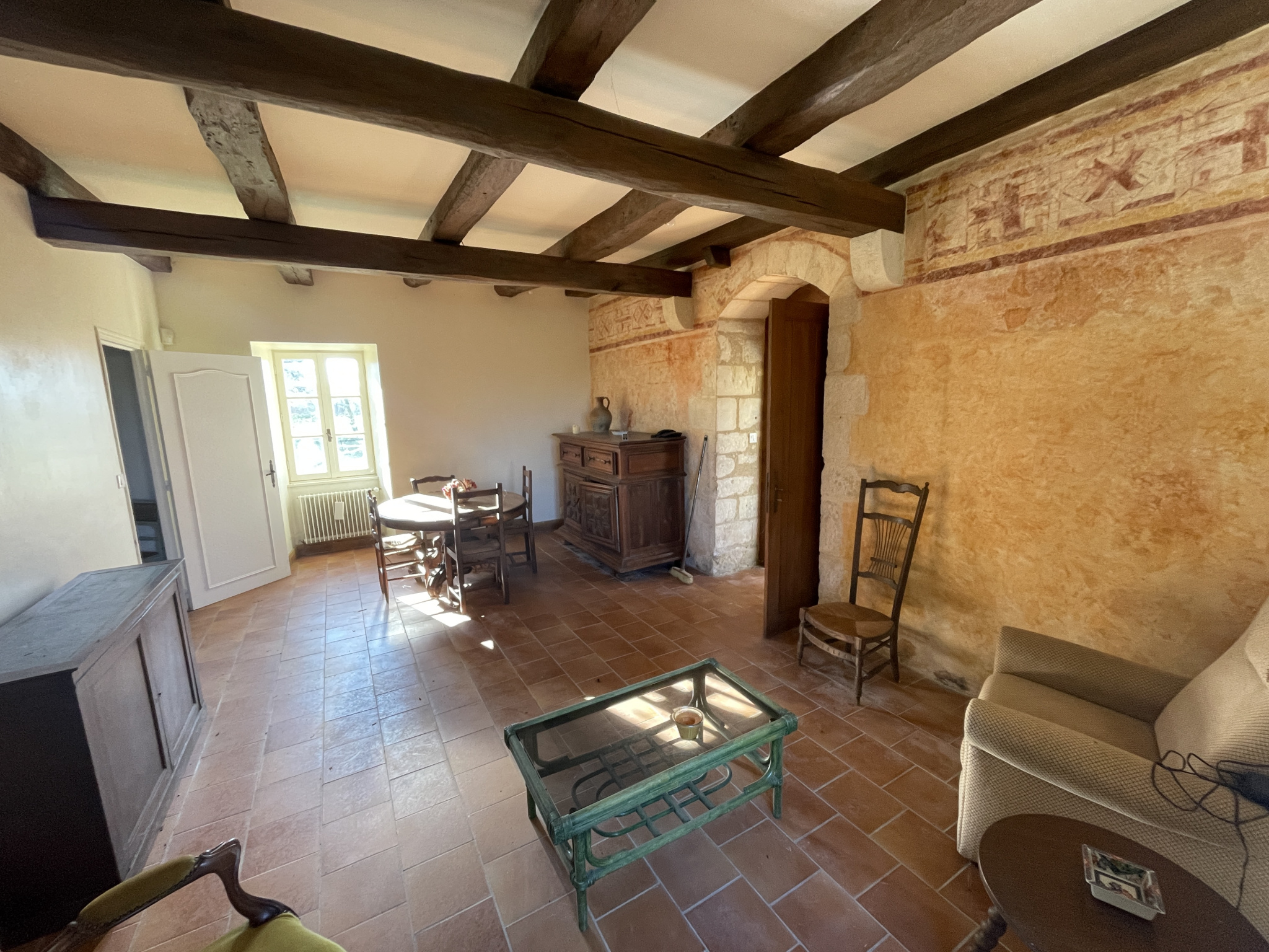 - Belle pièce sur tommettes de 42,50 m² avec grande cheminée médiévale