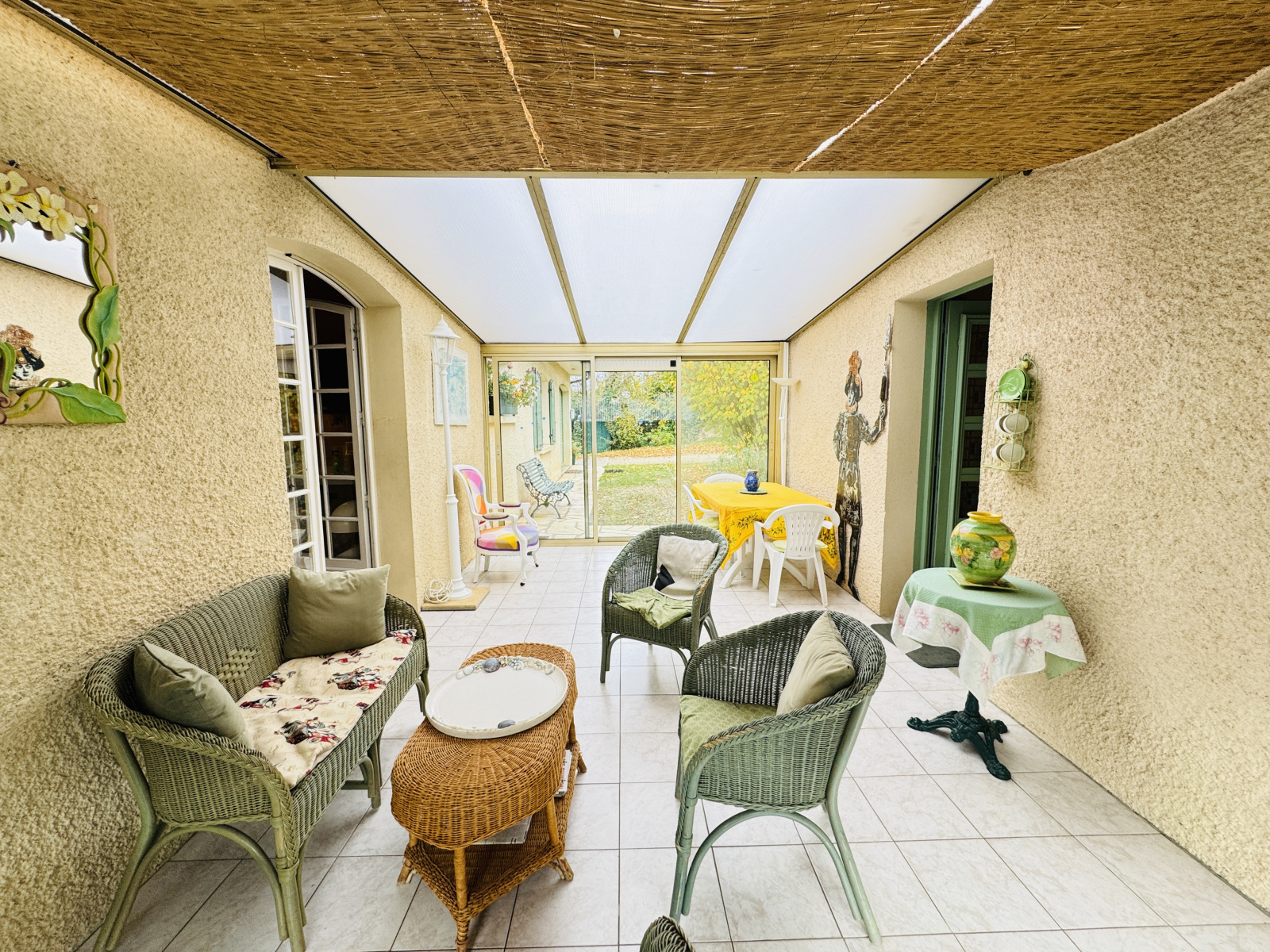 A proximité du bourg de Migné Auxances - Maison de plain-pied comprenant entrée, salon, cuisine ouverte sur salle à manger, trois chambres, salle d'eau, wc. Contigu à la maison dont la jonction se fait par une véranda, maison d'amis comprenant pièce de vie, petite cuisine, chambre, salle d'eau et wc.
